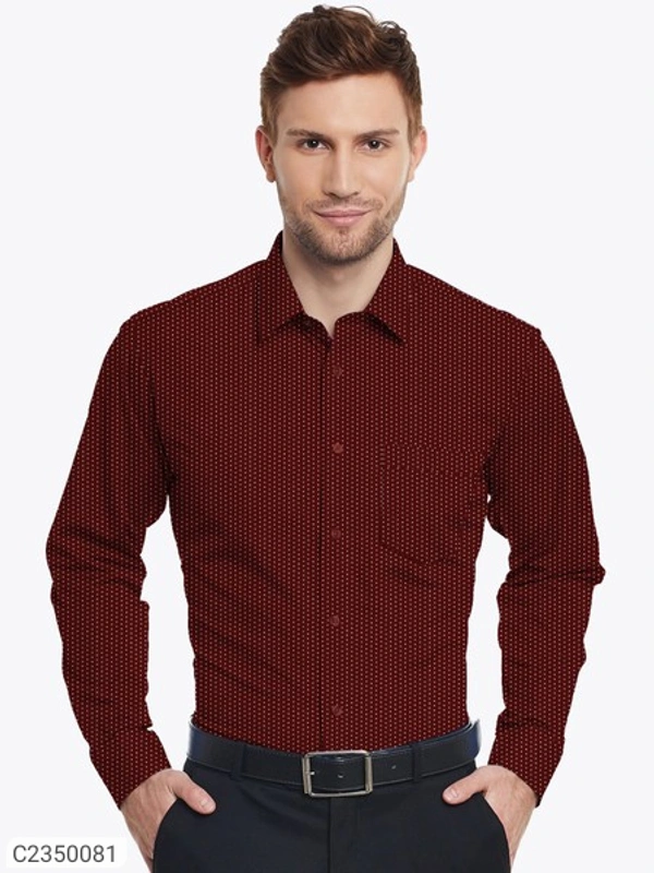 Product Name: Cotton Printed Full Sleeves Regular Fit Mens Formal Shirt Package Contains: It has 1 pair of casual shirt for men's Fabric: Cotton Color: Maroon Pattern: Printed Fit: Slim Fit Sleeves Type: Full Sleeves Collar Type: Shirt Collar Occasion: Casual Combo: Pack of 1 Ideal For: Men Weight: 100