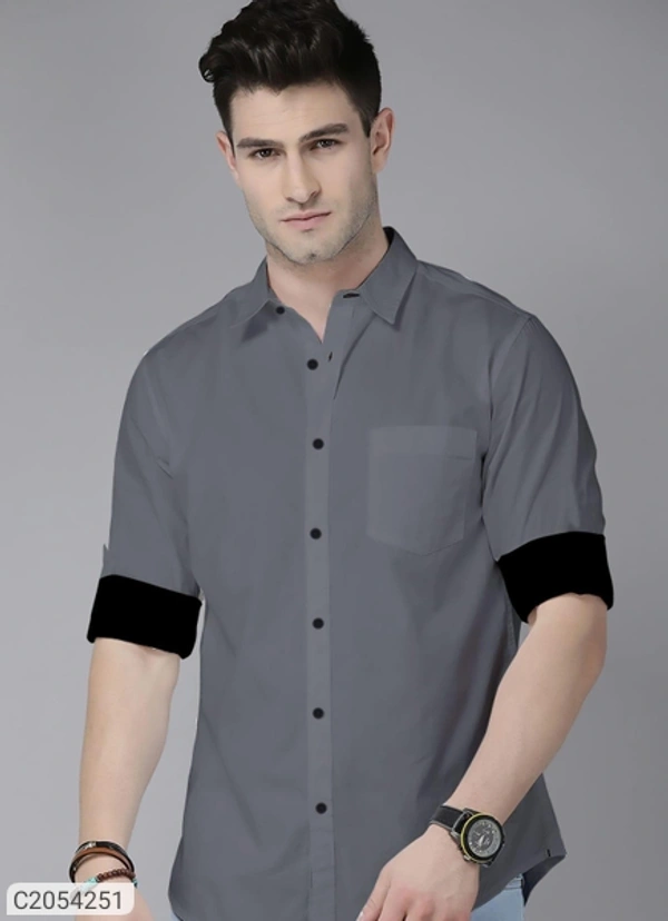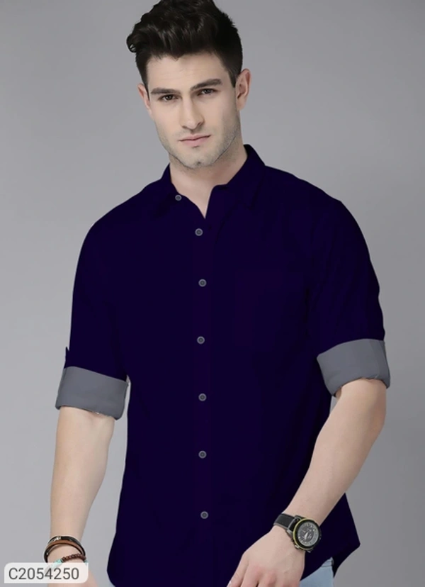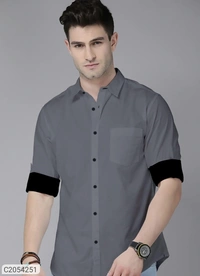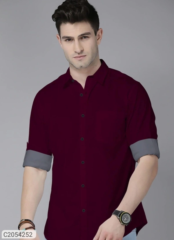 Cotton Solid Full Sleeves Men Casual Shirt