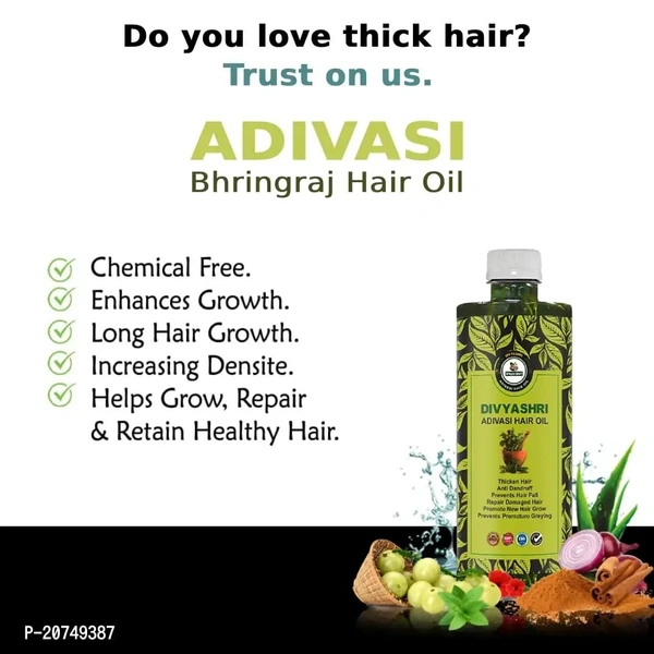 Adivasi Hair Oil: A herbal hair oil formulated with traditional ingredients. Made with natural ingredients sourced from indigenous forests. Crafted using traditional methods to preserve the efficacy of the ingredients. Contains herbs known for their beneficial properties. Proudly made in INDIA with the power of Ayurveda.