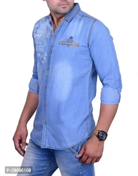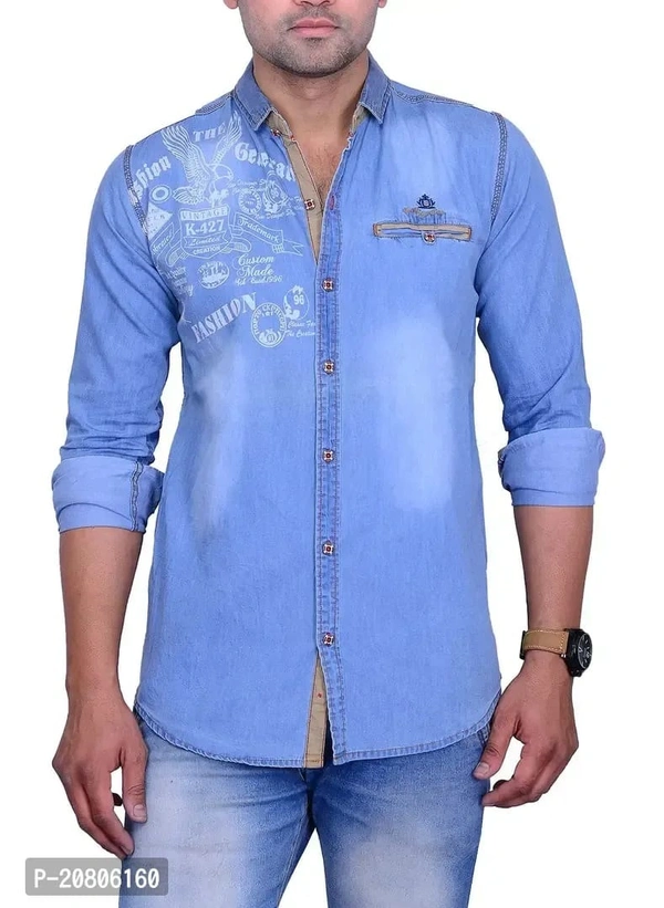 • Denim Shirt• Emzime bio Washed• Steem Pressed• High Quality stitchLa Milano has created this awsome Deinm shirt with print on it.The product is created with high quality denim fabric. As shown in Image there is washing effact on the fornt of the shirt and on the back of the shirt. La Milano has put prints on the left shoulder of the product. Product has one bone pocket with a looks and button. There is a matching fabric on the button strip and front of the stent as shown in Image. It has red piping at the bottom of the stent.It also have small print on the back of the neck.La milano has put typical denim stitch on the product. This product will make you look awsome.