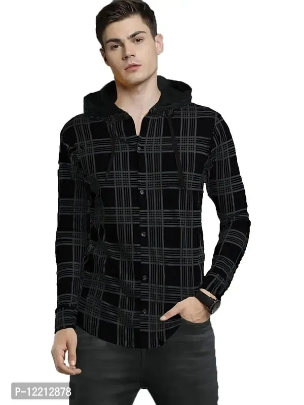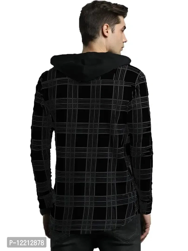 LEWEL Men's Hooded Stylish Checkered Full Sleeve Shirt (Black, Medium)