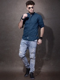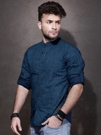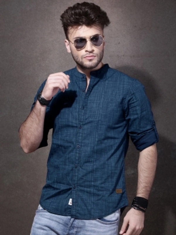 Roadster Men Self Design Casual Blue Shirt
