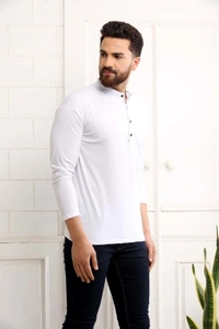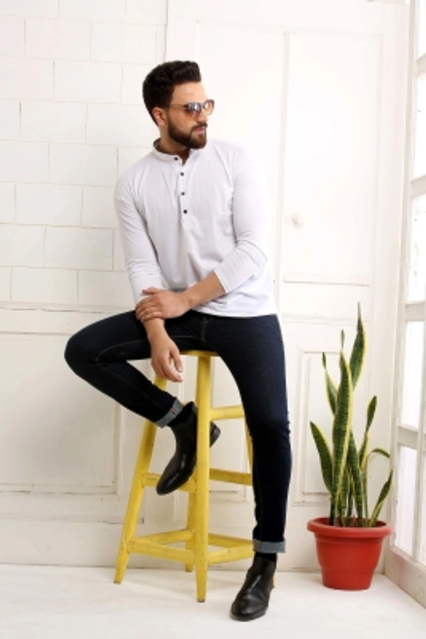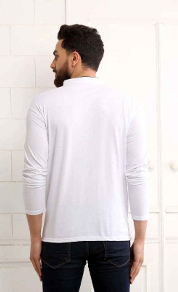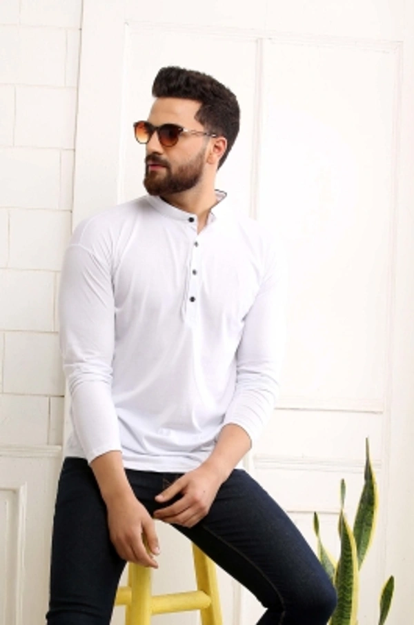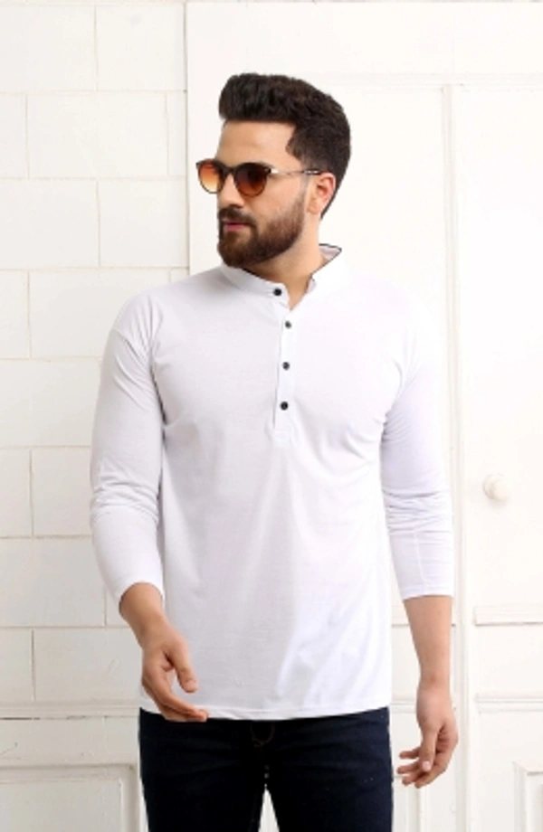 SCATCHITE Solid Men Mandarin Collar White T-Shirt